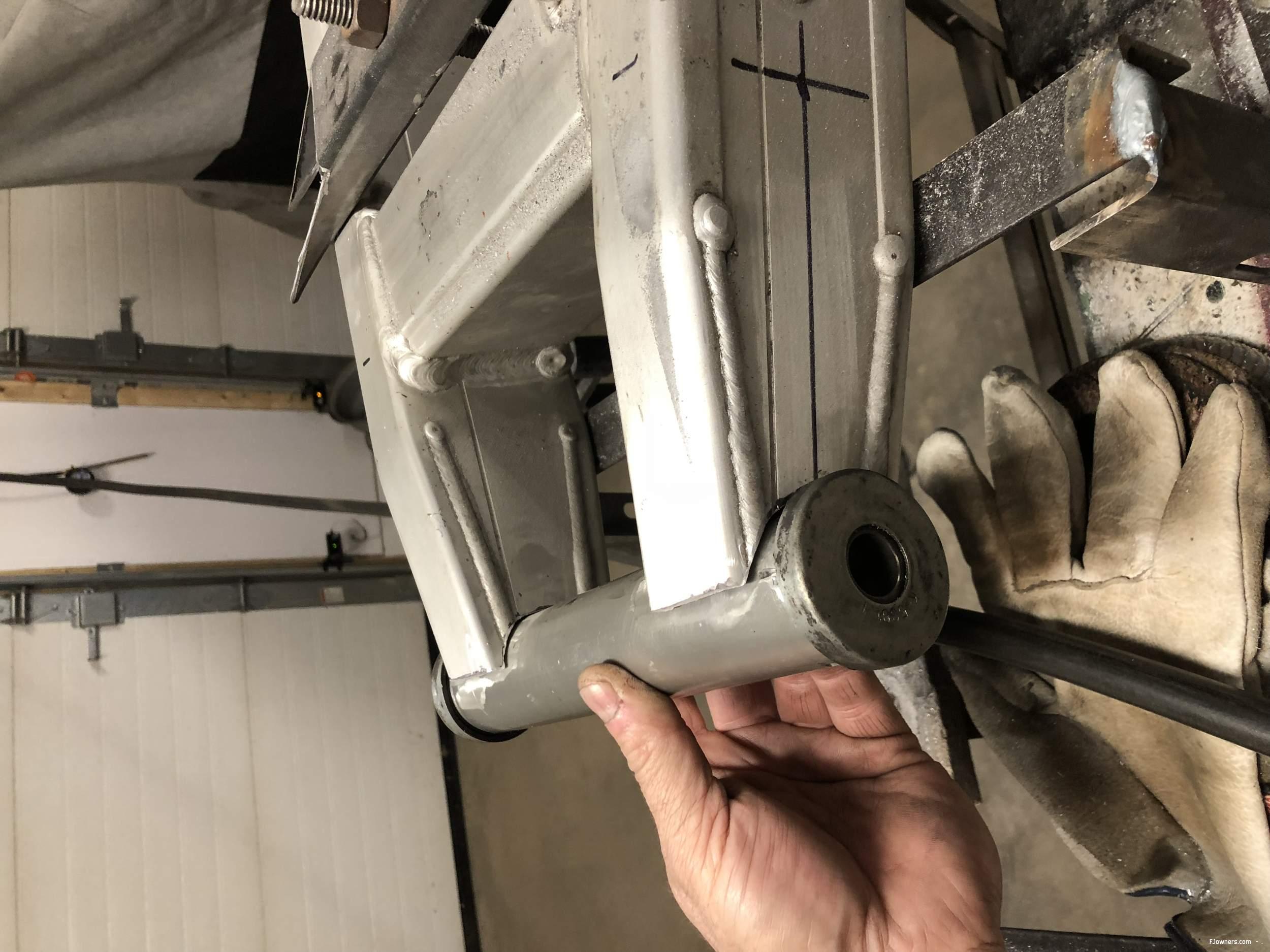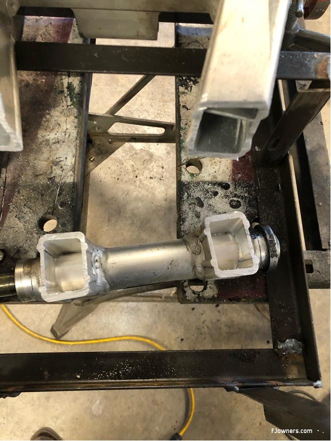I welded with the bearings and pivot spacer installed to help keep the AL from shifteing too much under the heat of welding. The bearings were scrap and needed to be replaced anyways so this is a good "end of life" purpose for them.