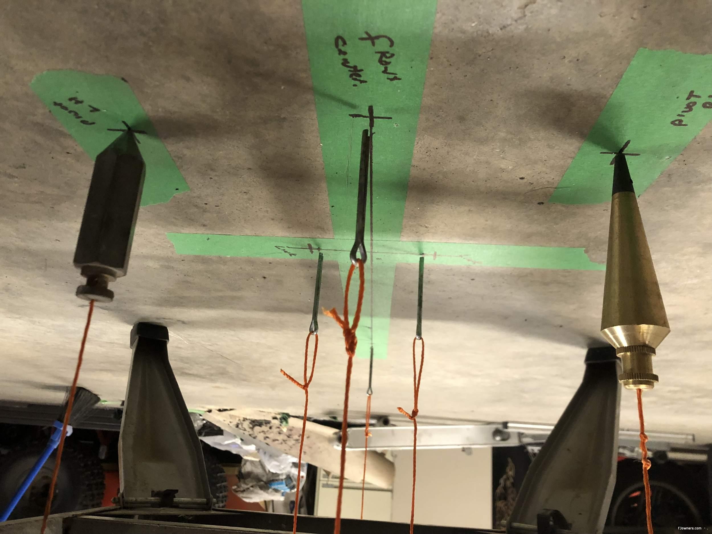 First, I level and true up a stock swingarm and drop reference points to the floor from my critical dimensions: