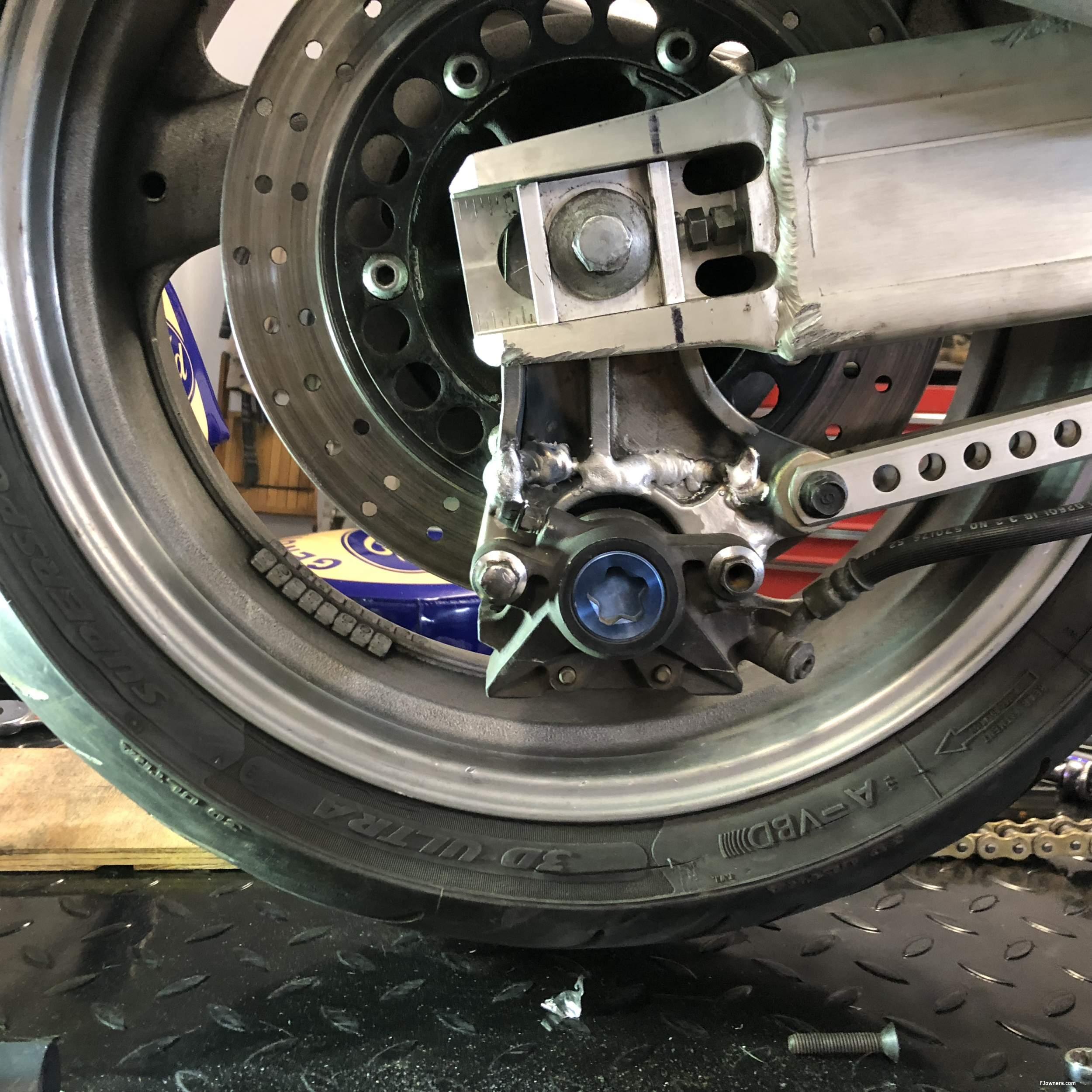 Regarding the back brake, just wondered if you'd come across Marc Rittner's work on his FJ - he's fitted a R1 caliper to a FZ1 mount on his Thunderace rear wheel/swinging arm conversion.