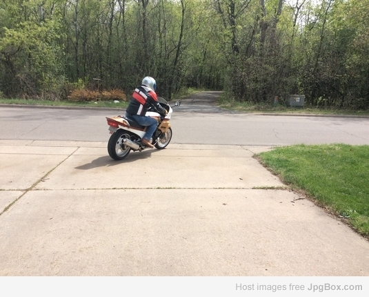 Took Momma for a ride, there is just something about a 115lb. brunette from Colombia on the back of a sport bike, but, she is not much of a rider. My kid got a quick ride, too.